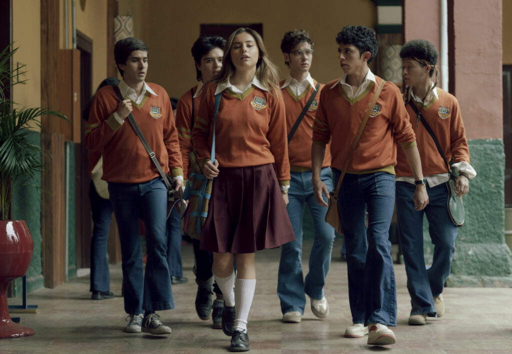 «La primera vez» – Temporada 1. (L to R) Emmanuel Restrepo, Brandon Figueredo, Francisca Estevez, Julian Cerati, Sergio Palau, Mateo García in La Primera Vez Temporada 1. Cr Mauro Gonzalez/Netflix © 2022
