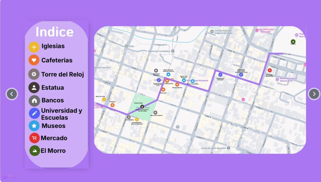 Bienvenido a este mapa interactivo pensado para los ciudadanos y turistas que desean explorar el corazón histórico de Popayán, Cauca. A través de este recorrido cartográfico podrás adentrarte en los lugares más emblemáticos de la ciudad blanca, reconocida por su arquitectura colonial, su riqueza cultural y su legado patrimonial.
